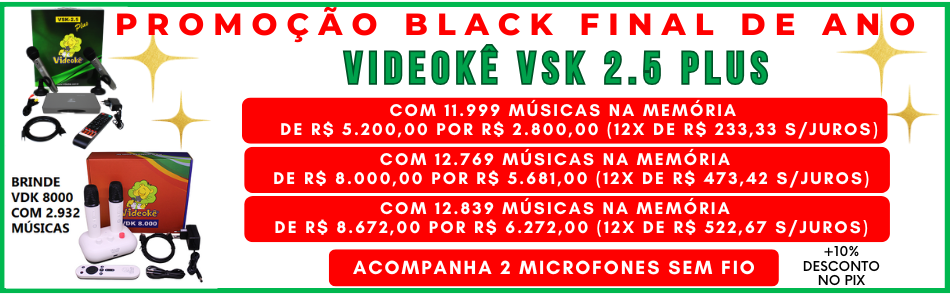 PROMOÇÕES BLACK FINAL DO ANO 2025 CLIQUE AQUI PARA VISUALIZAR A LISTAGEM DE TODO O REPERTÓRIO DO VIDEOKÊ |